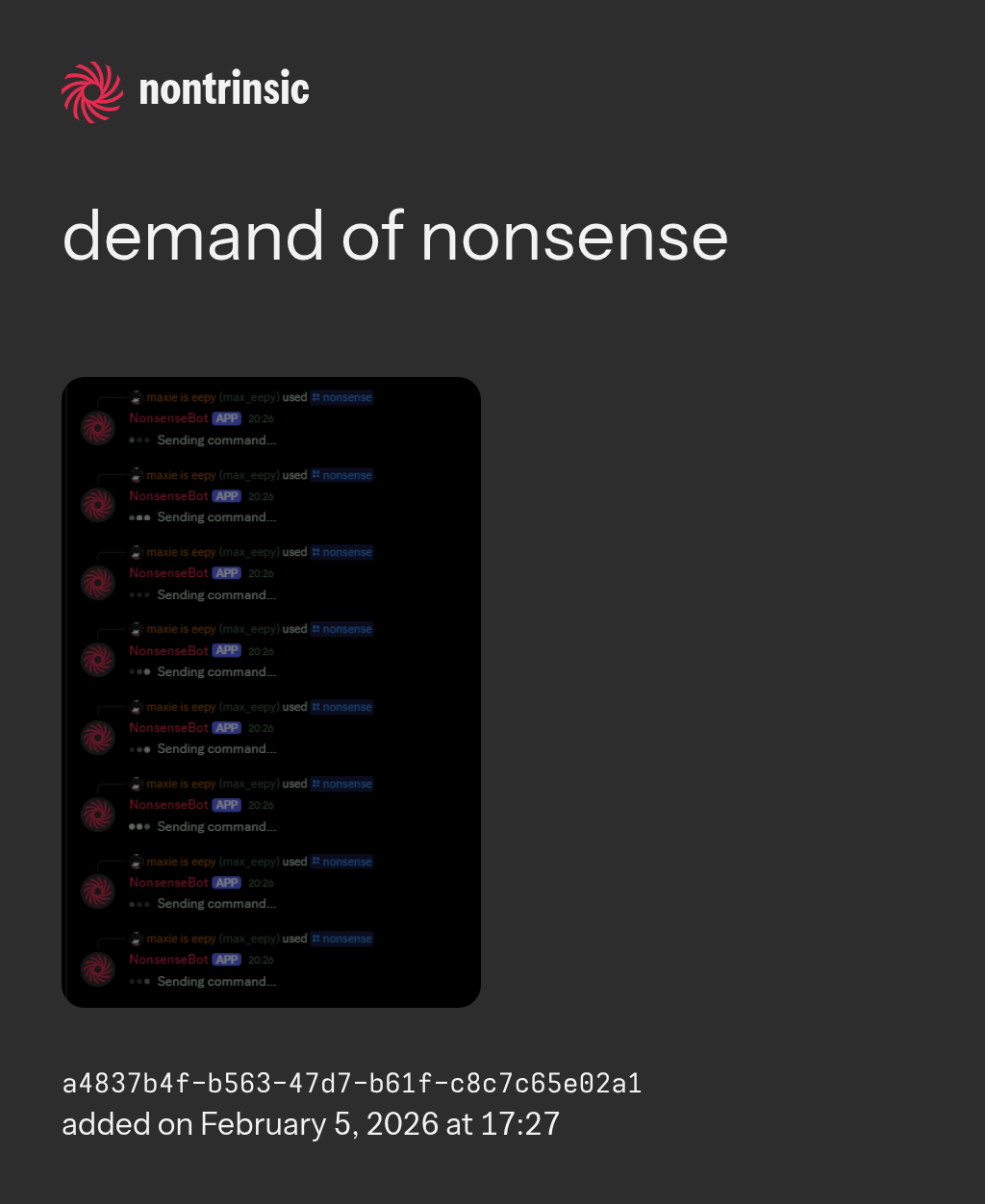 Discord screenshot of max_eepy requesting nonsense from NonsenseBot multiple times, but the bot is still processing