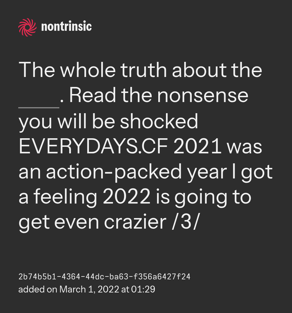 . Read the nonsense you will be shocked EVERYDAYS.CF 2021 was an action-packed year I got a feeling 2022 is going to get even crazier /3/