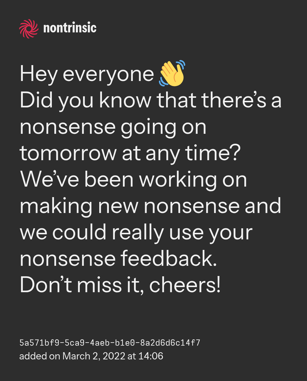 We’ve been working on making new nonsense and we could really use your nonsense feedback.