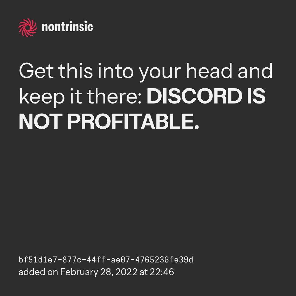 teilenGet this into your head and keep it there: DISCORD IS NOT PROFITABLE.
