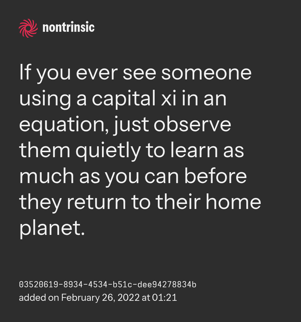 teilenIf you ever see someone using a capital xi in an equation, just observe them quietly to learn as much as you can before they return to their home planet.