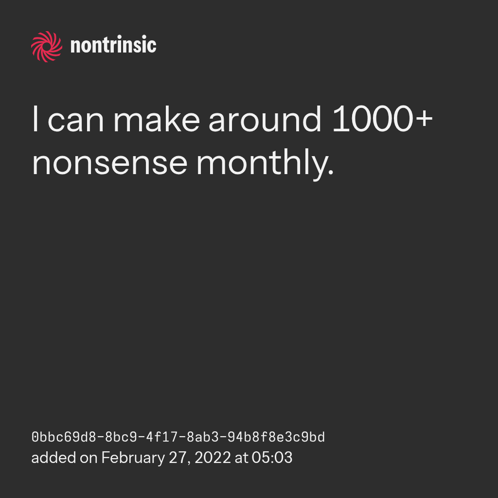 Discover nonsense, nonsense, and more nonsense. Share your nonsense with others.