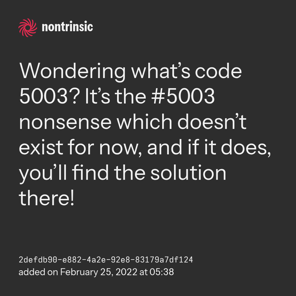 teilenWondering what’s code 5003? It’s the #5003 nonsense which doesn’t exist for now, and if it does, you’ll find the solution there!