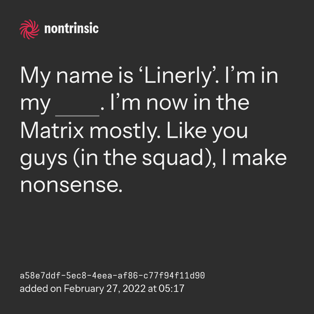 . I’m now in the Matrix mostly. Like you guys (in the squad), I make nonsense.
