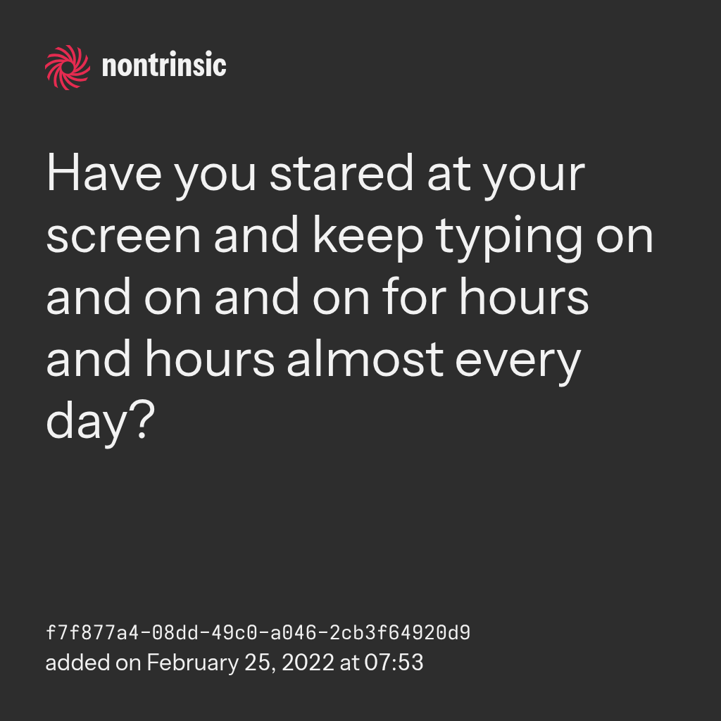 teilenHave you stared at your screen and keep typing on and on and on for hours and hours almost every day?