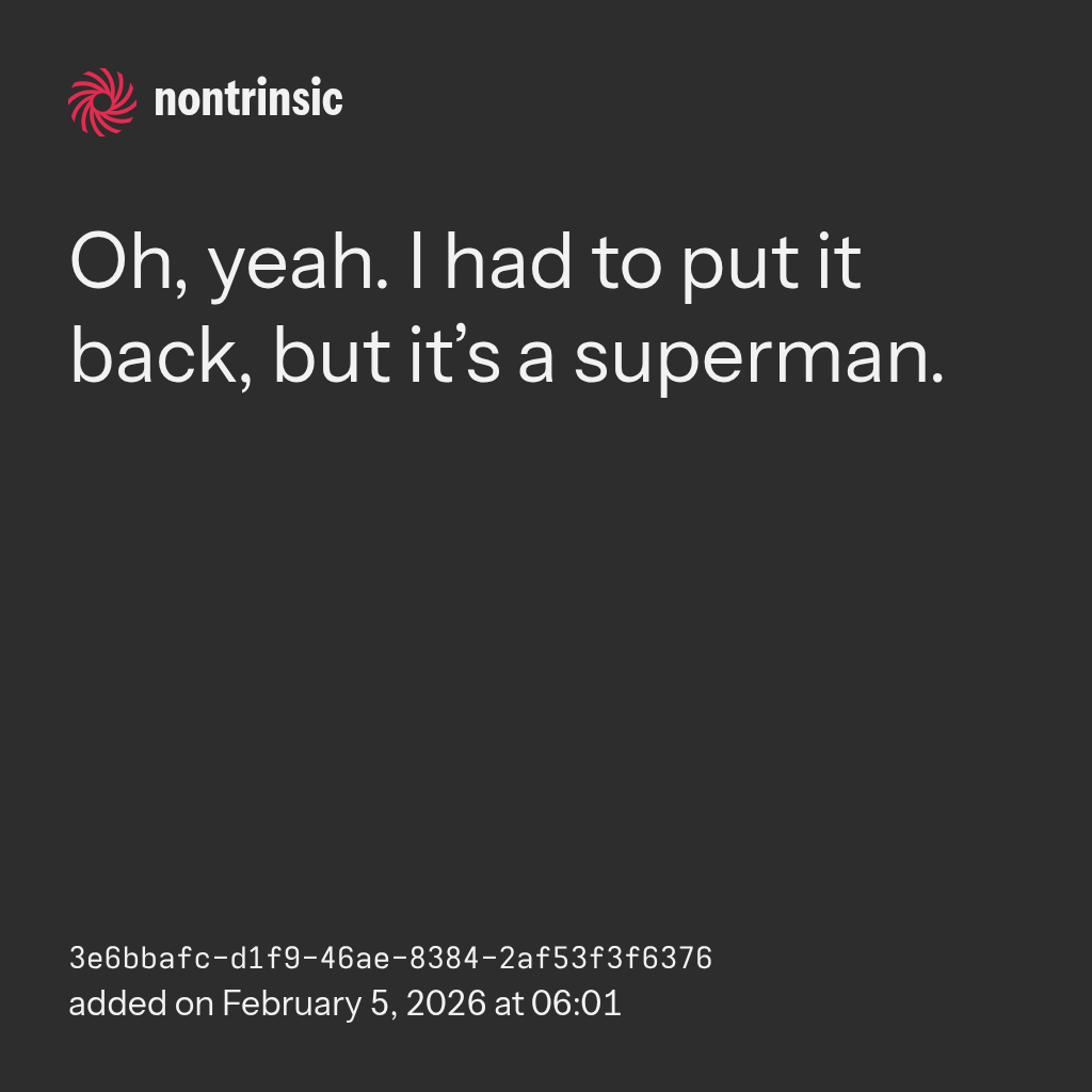 teilenOh, yeah. I had to put it back, but it’s a superman.