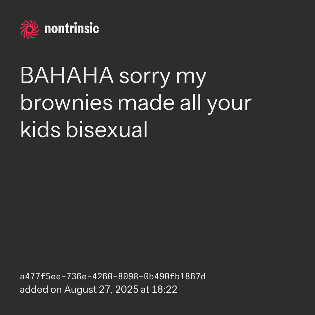 BAHAHA sorry my brownies made all your kids bisexual