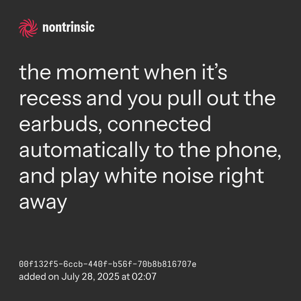 sharethe moment when it’s recess and you pull out the earbuds, connected automatically to the phone, and play white noise right away