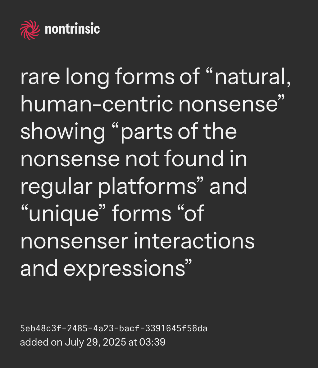 sharerare long forms of “natural, human-centric nonsense” showing “parts of the nonsense not found in regular platforms” and “unique” forms “of nonsenser interactions and expressions”