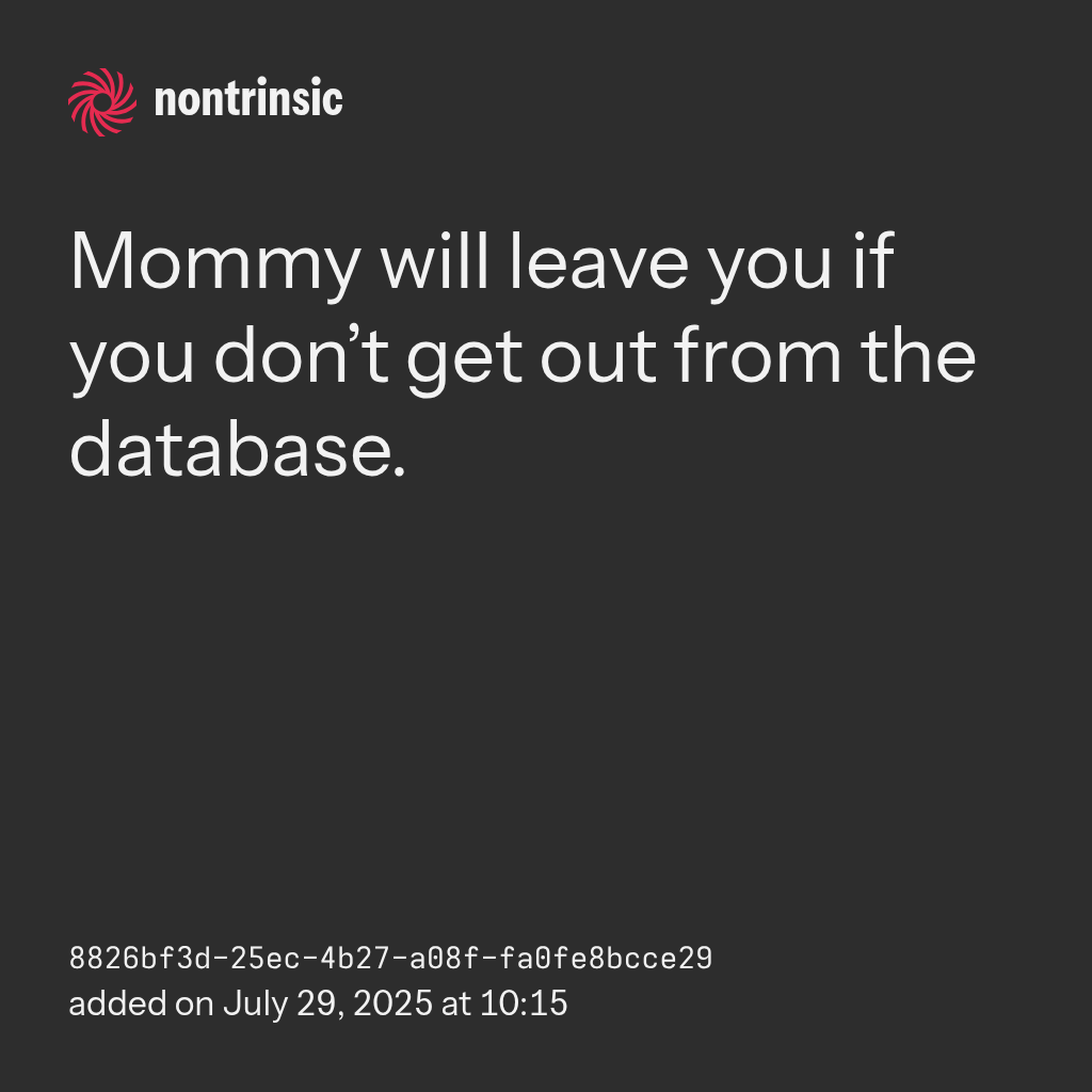 Mommy will leave you if you don’t get out from the database.