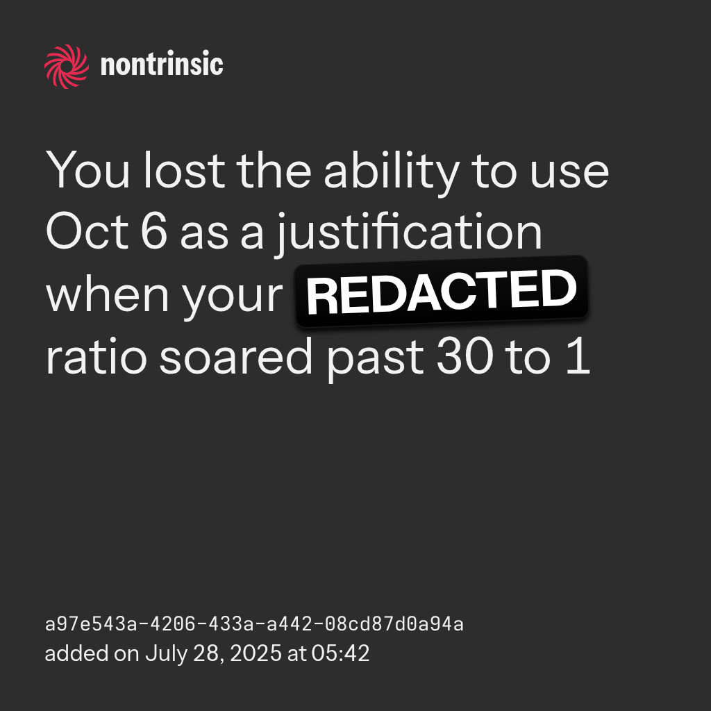 shareYou lost the ability to use Oct 6 as a justification when your REDACTED ratio soared past 30 to 1