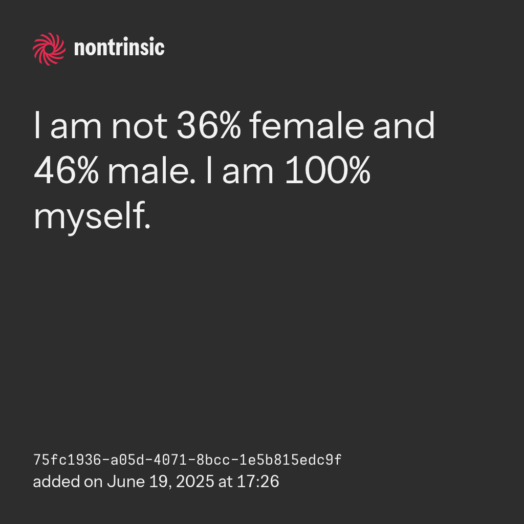 shareI am not 36% female and 46% male. I am 100% myself.