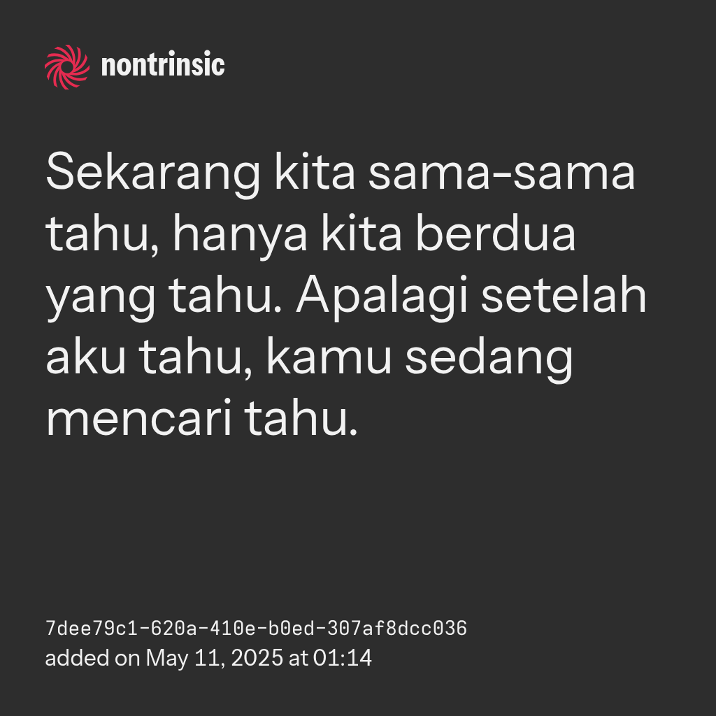 shareSekarang kita sama-sama tahu, hanya kita berdua yang tahu. Apalagi setelah aku tahu, kamu sedang mencari tahu.