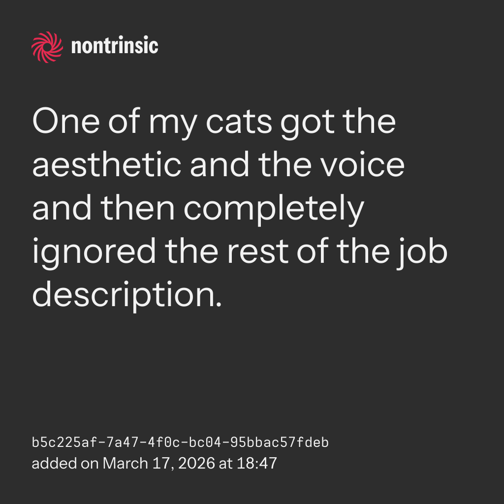 shareOne of my cats got the aesthetic and the voice and then completely ignored the rest of the job description.