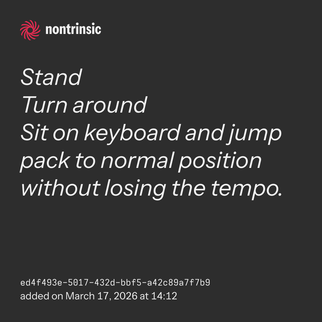 Sit on keyboard and jump pack to normal position without losing the tempo.