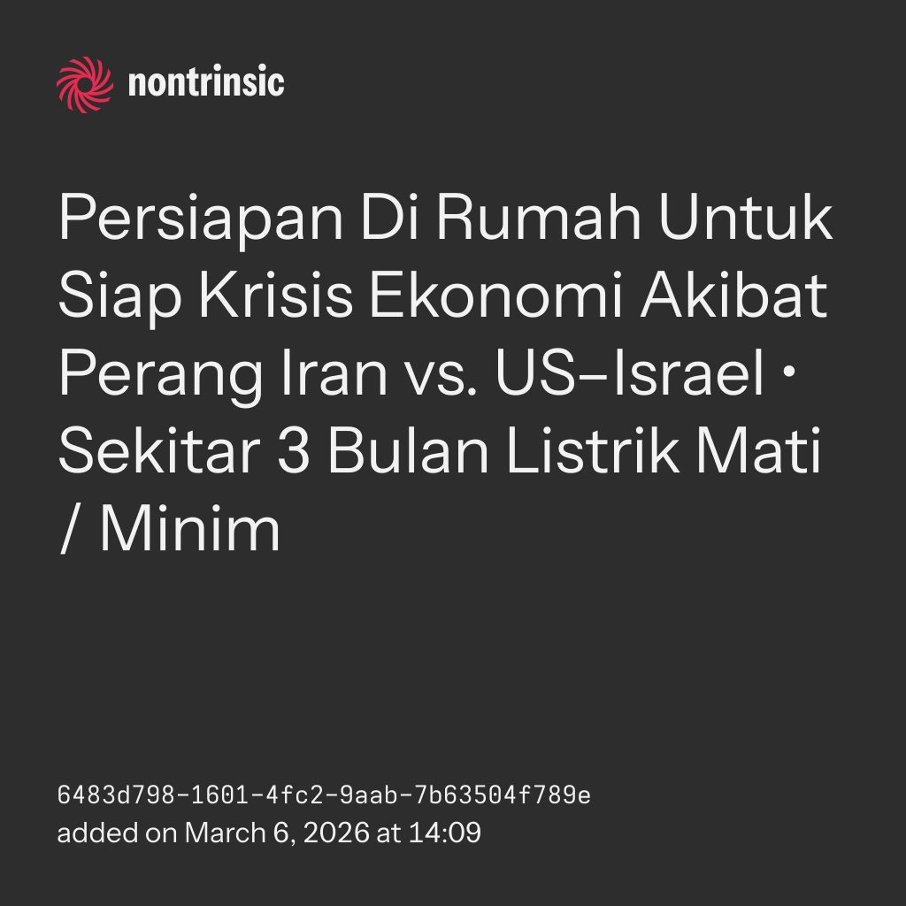 sharePersiapan Di Rumah Untuk Siap Krisis Ekonomi Akibat Perang Iran vs. US–Israel • Sekitar 3 Bulan Listrik Mati / Minim