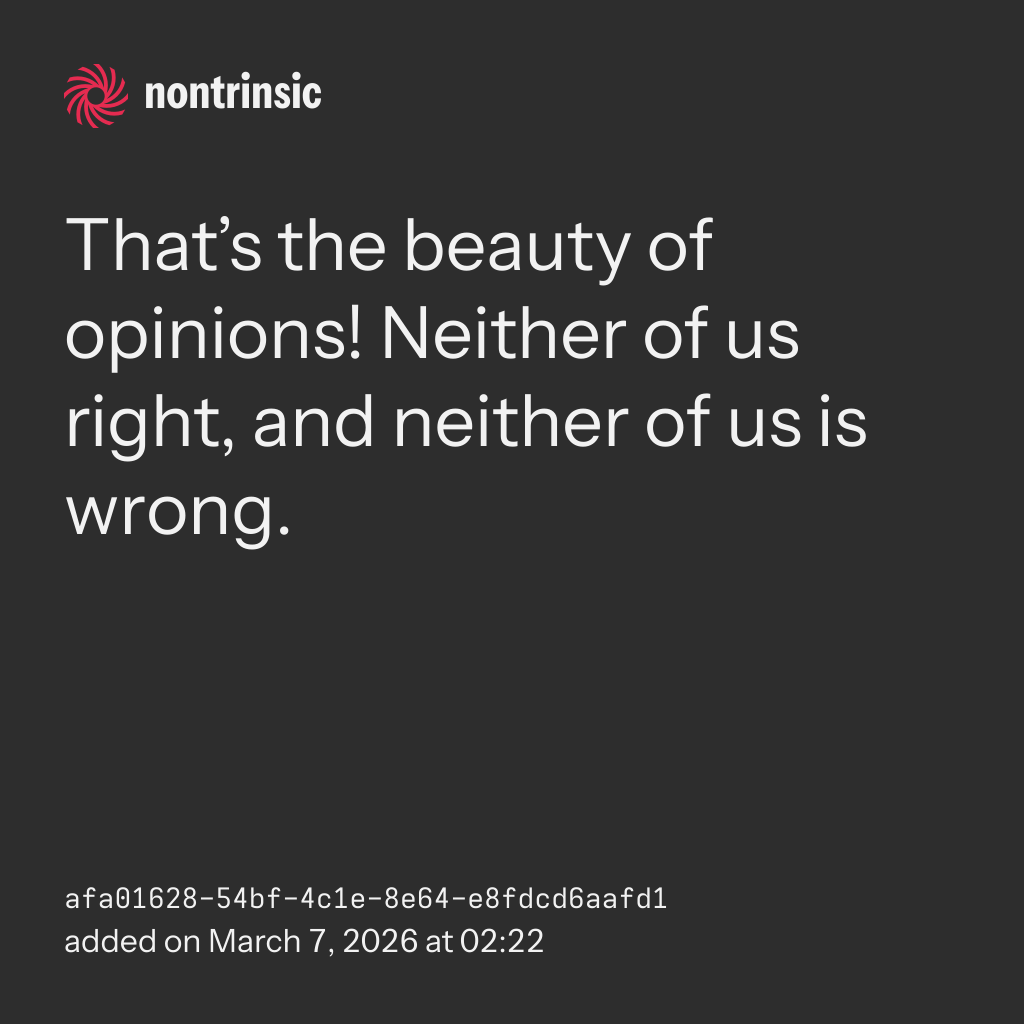 shareThat’s the beauty of opinions! Neither of us right, and neither of us is wrong.