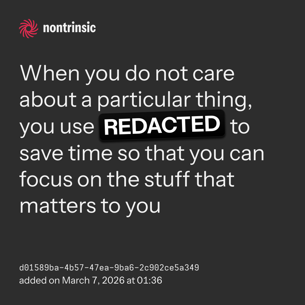shareWhen you do not care about a particular thing, you use REDACTED to save time so that you can focus on the stuff that matters to you