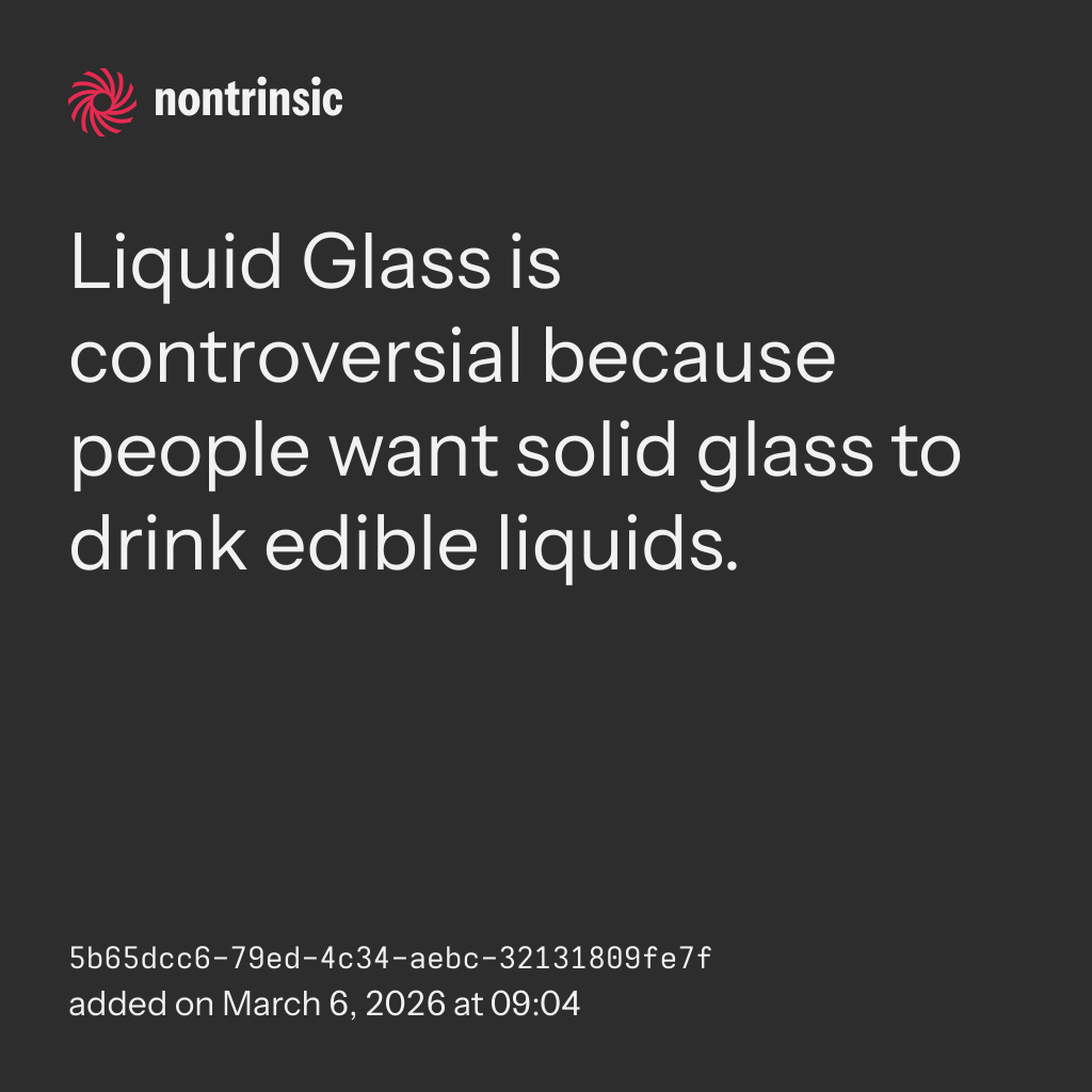 shareLiquid Glass is controversial because people want solid glass to drink edible liquids.