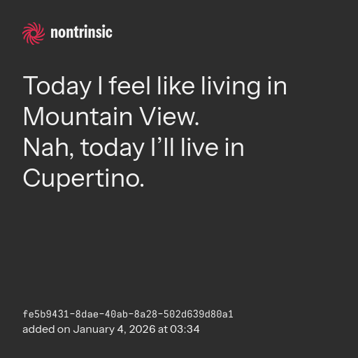 Nah, today I’ll live in Cupertino.