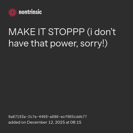 shareMAKE IT STOPPP (i don’t have that power, sorry!)