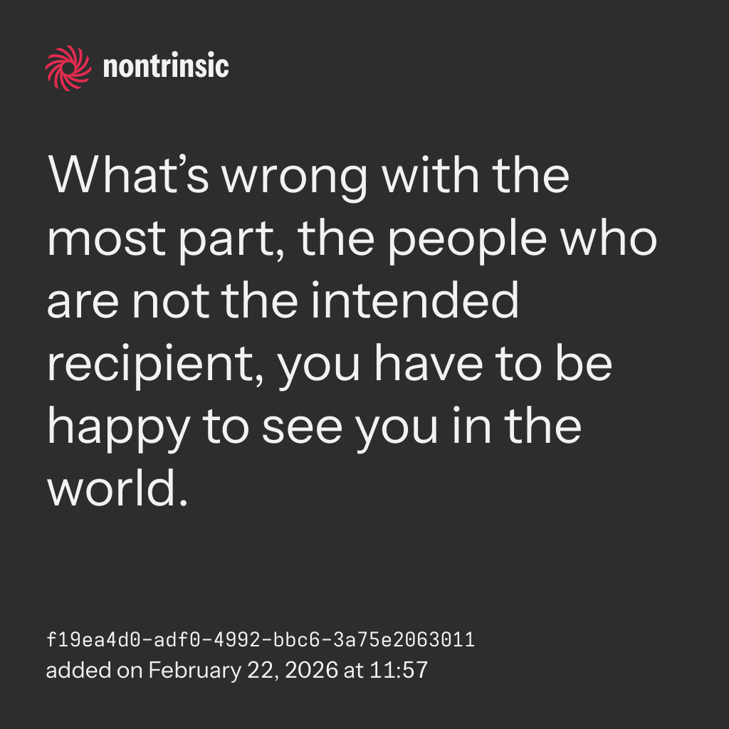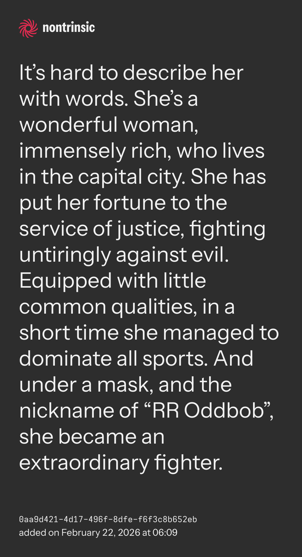 Selama orang tersebut ada dalam galaksi, ia berkontribusi kalimat-kalimat luar nalar seperti biasanya, tetapi tidak seaktif para kontributor yang lain. Ia hanya berkontribusi pada waktu luang. Namun, dengan berjalannya waktu, ia mengatakan sesuatu yang orang lain tidak pernah mengatakan: ia berpikir bahwa kalimat-kalimat yang ada dalam galaksi tersebut “mid” dan “ts so stale bruv” dilanjutkan dengan “like the most shallow content ever omfg”—pada intinya, kalimat-kalimatnya itu, menurut dia, tidak memiliki makna.