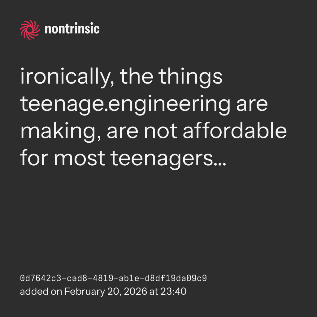 shareironically, the things teenage.engineering are making, are not affordable for most teenagers…