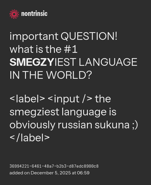 <label> <input /> the smegziest language is obviously russian sukuna ;) </label>