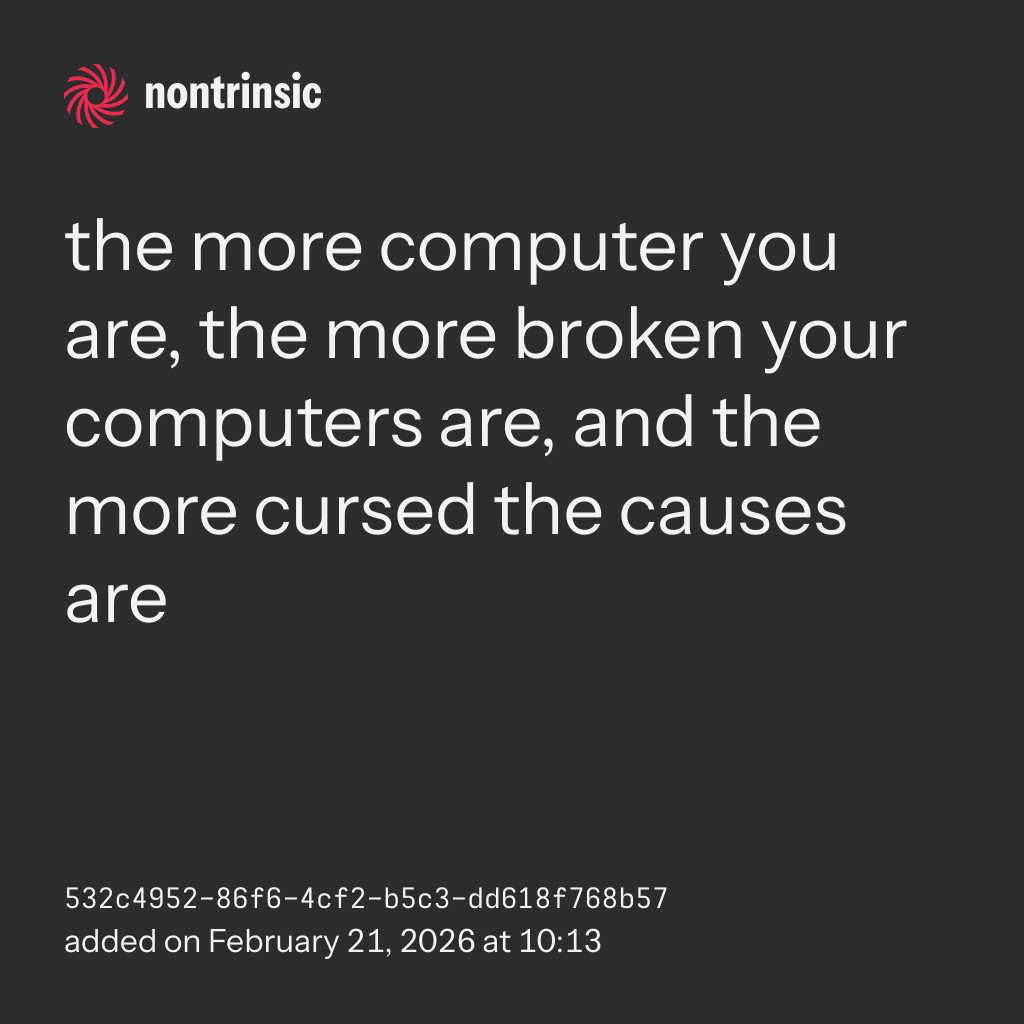 sharethe more computer you are, the more broken your computers are, and the more cursed the causes are