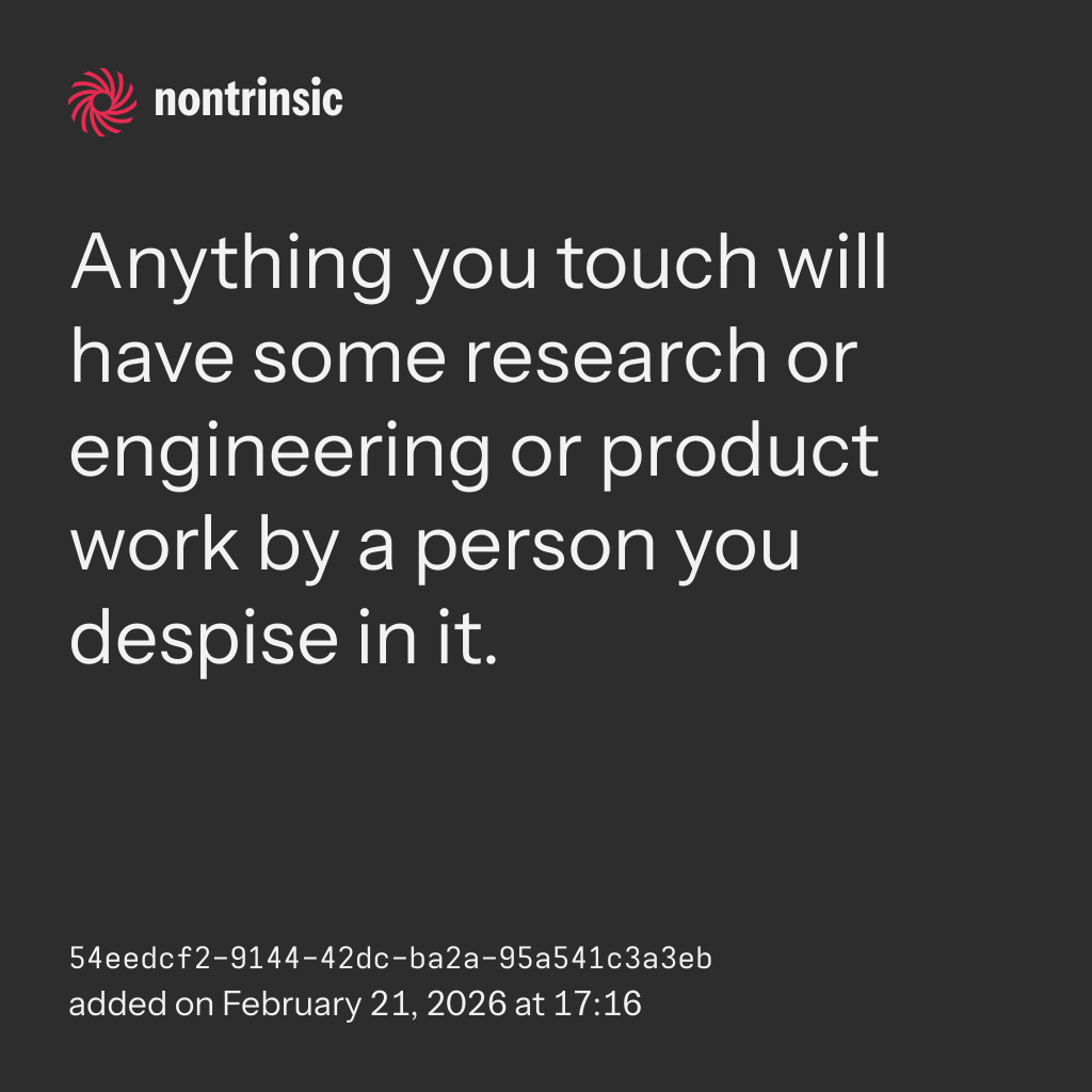 shareAnything you touch will have some research or engineering or product work by a person you despise in it.