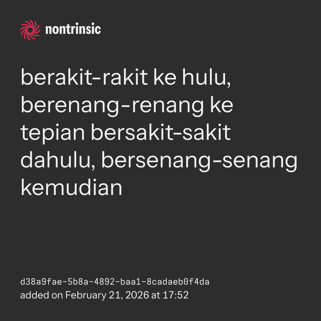shareberakit-rakit ke hulu, berenang-renang ke tepian bersakit-sakit dahulu, bersenang-senang kemudian