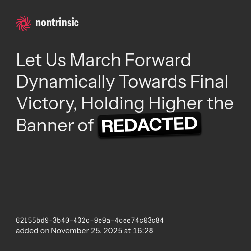 shareLet Us March Forward Dynamically Towards Final Victory, Holding Higher the Banner of REDACTED