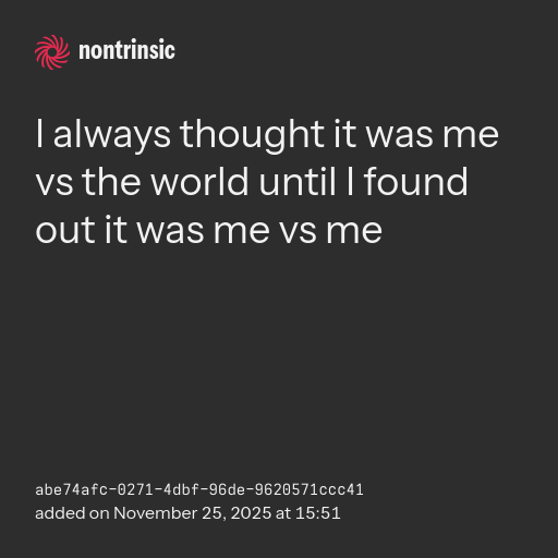 shareI always thought it was me vs the world until I found out it was me vs me