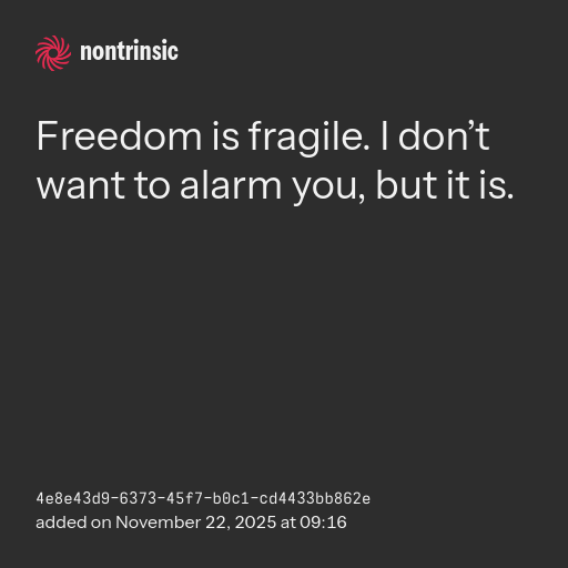 shareFreedom is fragile. I don’t want to alarm you, but it is.