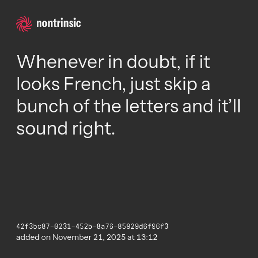 shareWhenever in doubt, if it looks French, just skip a bunch of the letters and it’ll sound right.