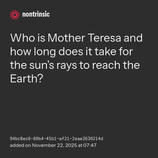 shareWho is Mother Teresa and how long does it take for the sun’s rays to reach the Earth?