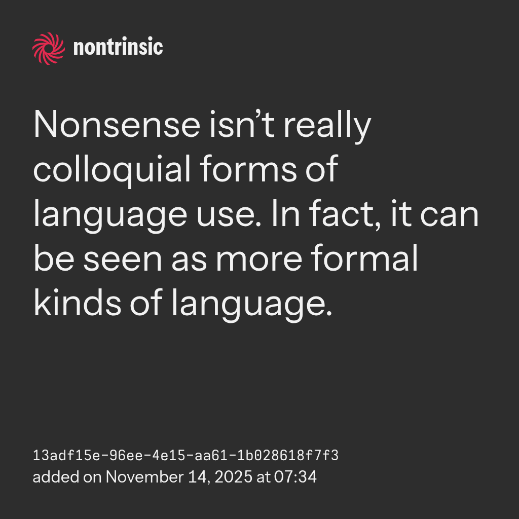 shareNonsense isn’t really colloquial forms of language use. In fact, it can be seen as more formal kinds of language.