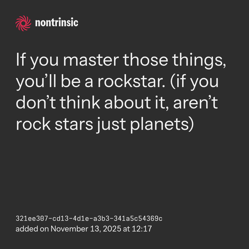 shareIf you master those things, you’ll be a rockstar. (if you don’t think about it, aren’t rock stars just planets)