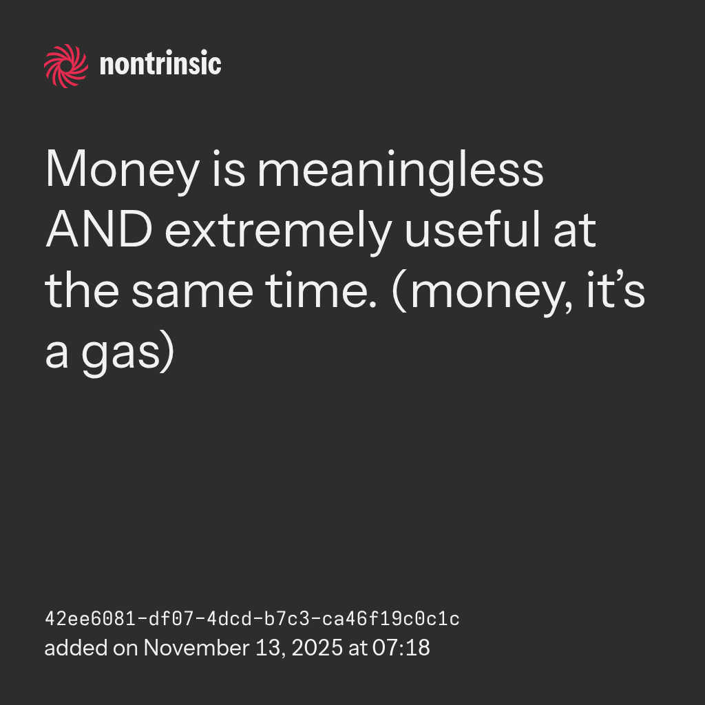shareMoney is meaningless AND extremely useful at the same time. (money, it’s a gas)