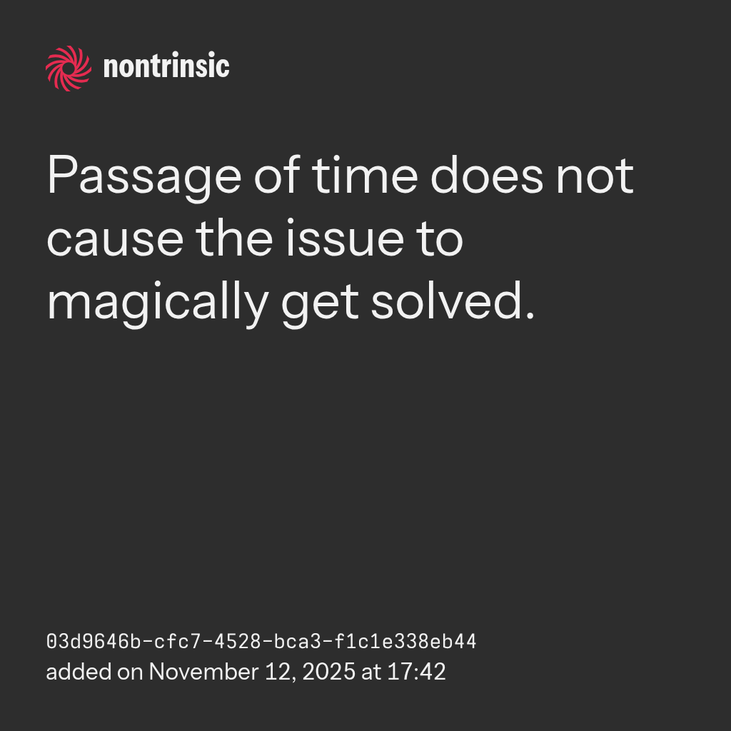 sharePassage of time does not cause the issue to magically get solved.