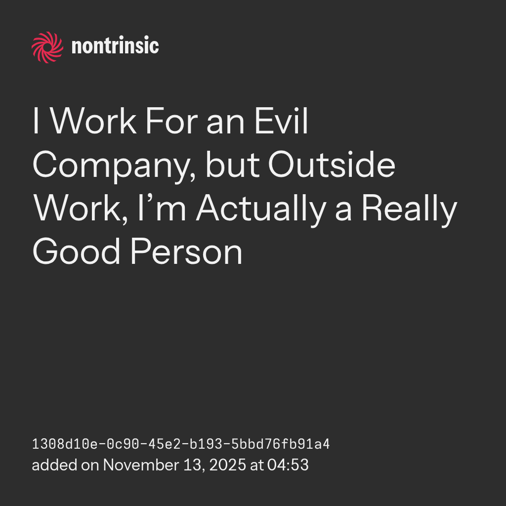I Work For an Evil Company, but Outside Work, I’m Actually a Really Good Person