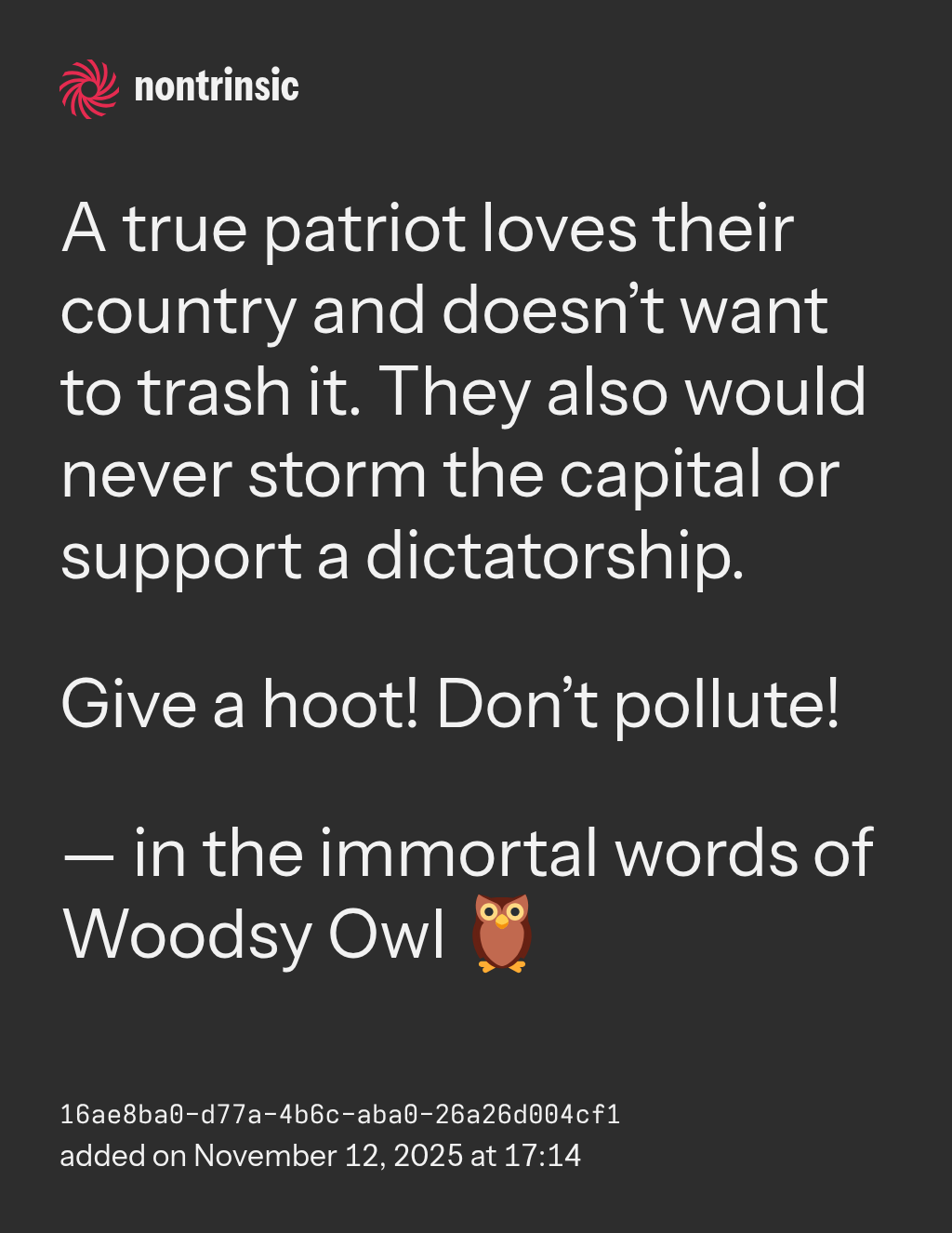 — in the immortal words of Woodsy Owl 🦉