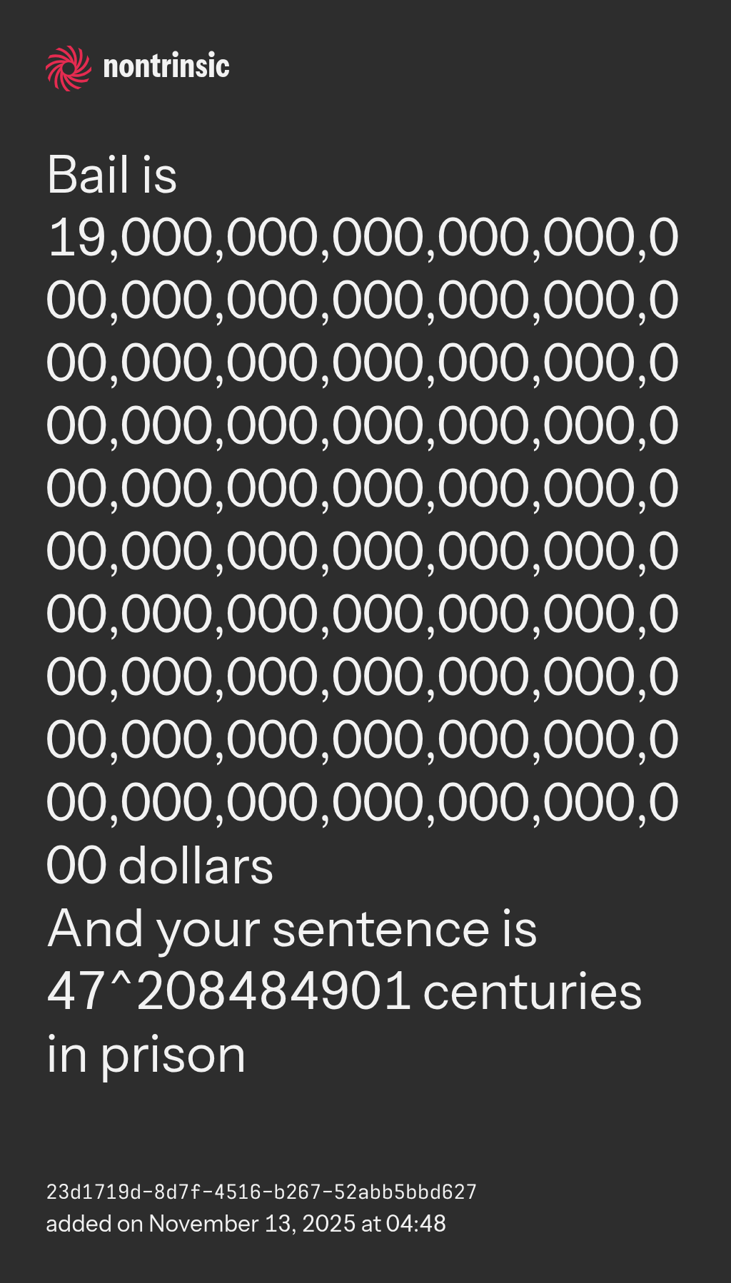 And your sentence is 47^208484901 centuries in prison