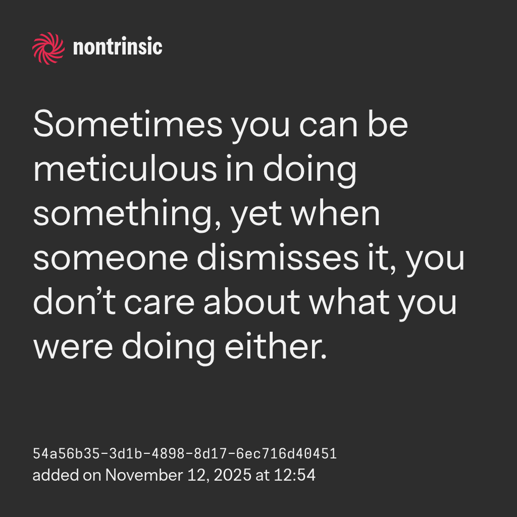 shareSometimes you can be meticulous in doing something, yet when someone dismisses it, you don’t care about what you were doing either.