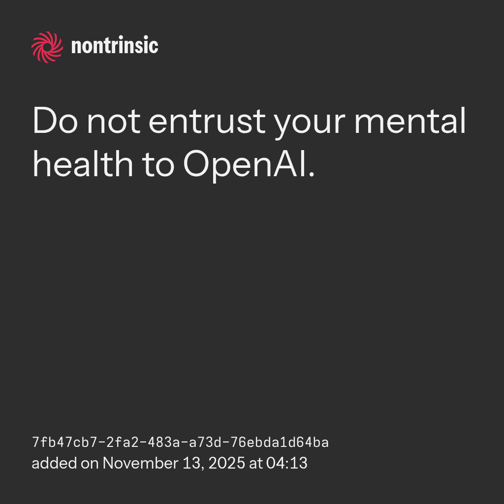 shareDo not entrust your mental health to OpenAI.
