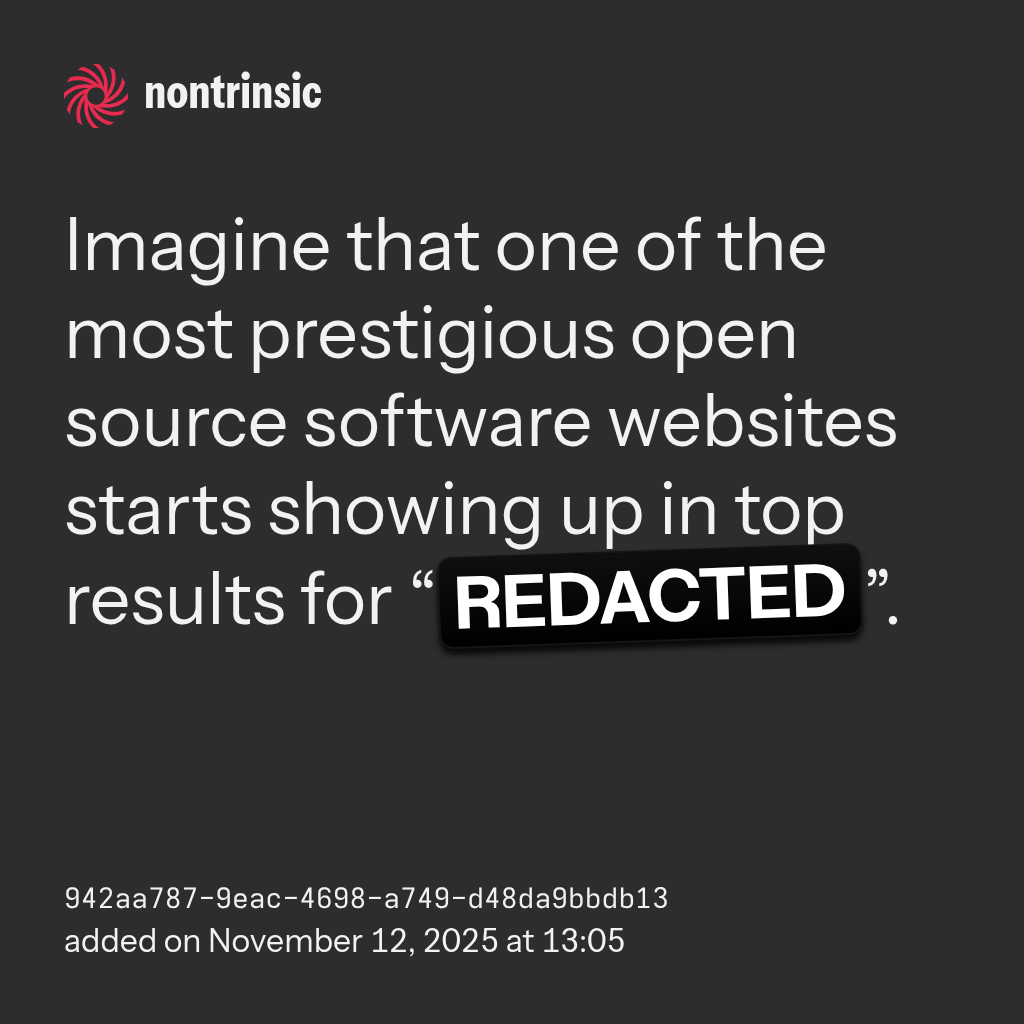 shareImagine that one of the most prestigious open source software websites starts showing up in top results for “REDACTED”.
