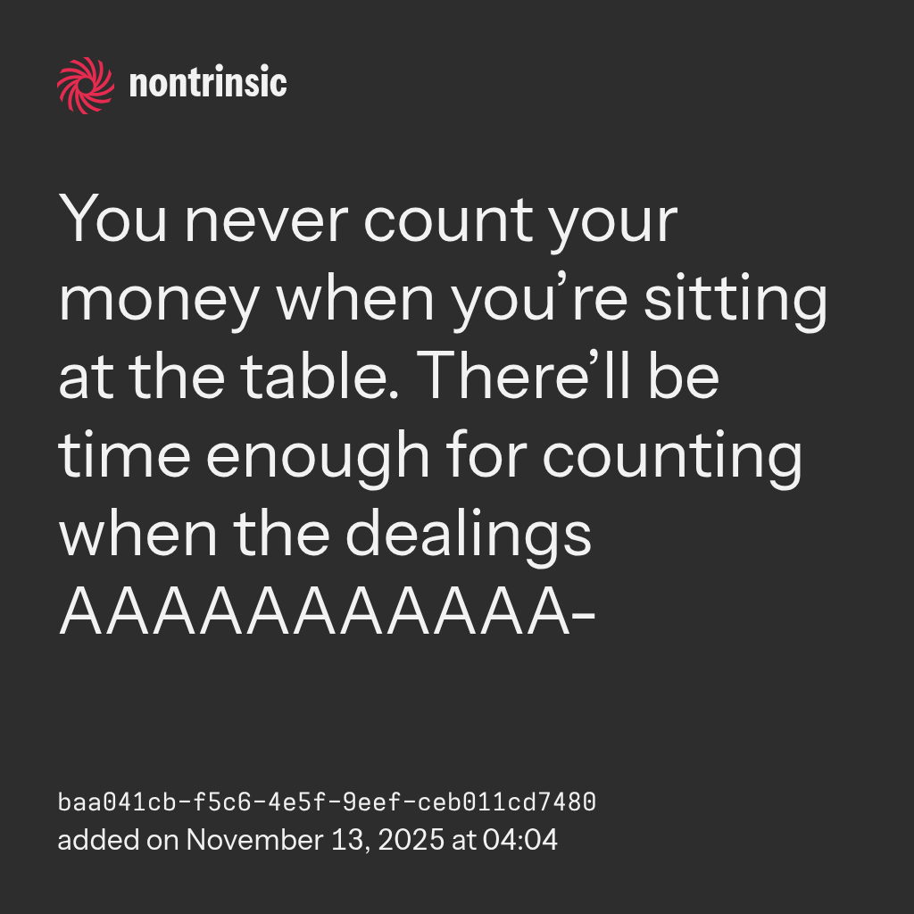 shareYou never count your money when you’re sitting at the table. There’ll be time enough for counting when the dealings AAAAAAAAAAA-