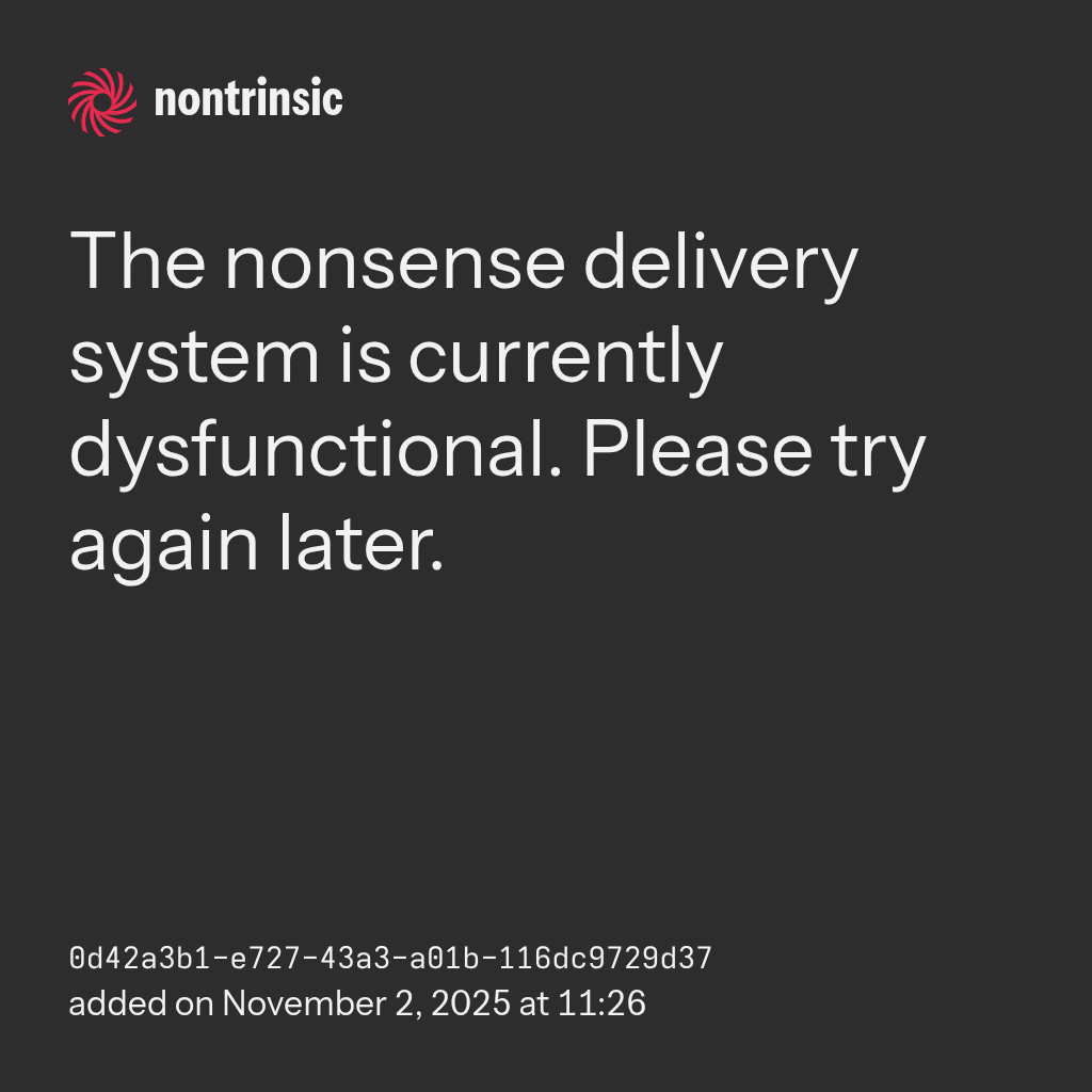 shareThe nonsense delivery system is currently dysfunctional. Please try again later.