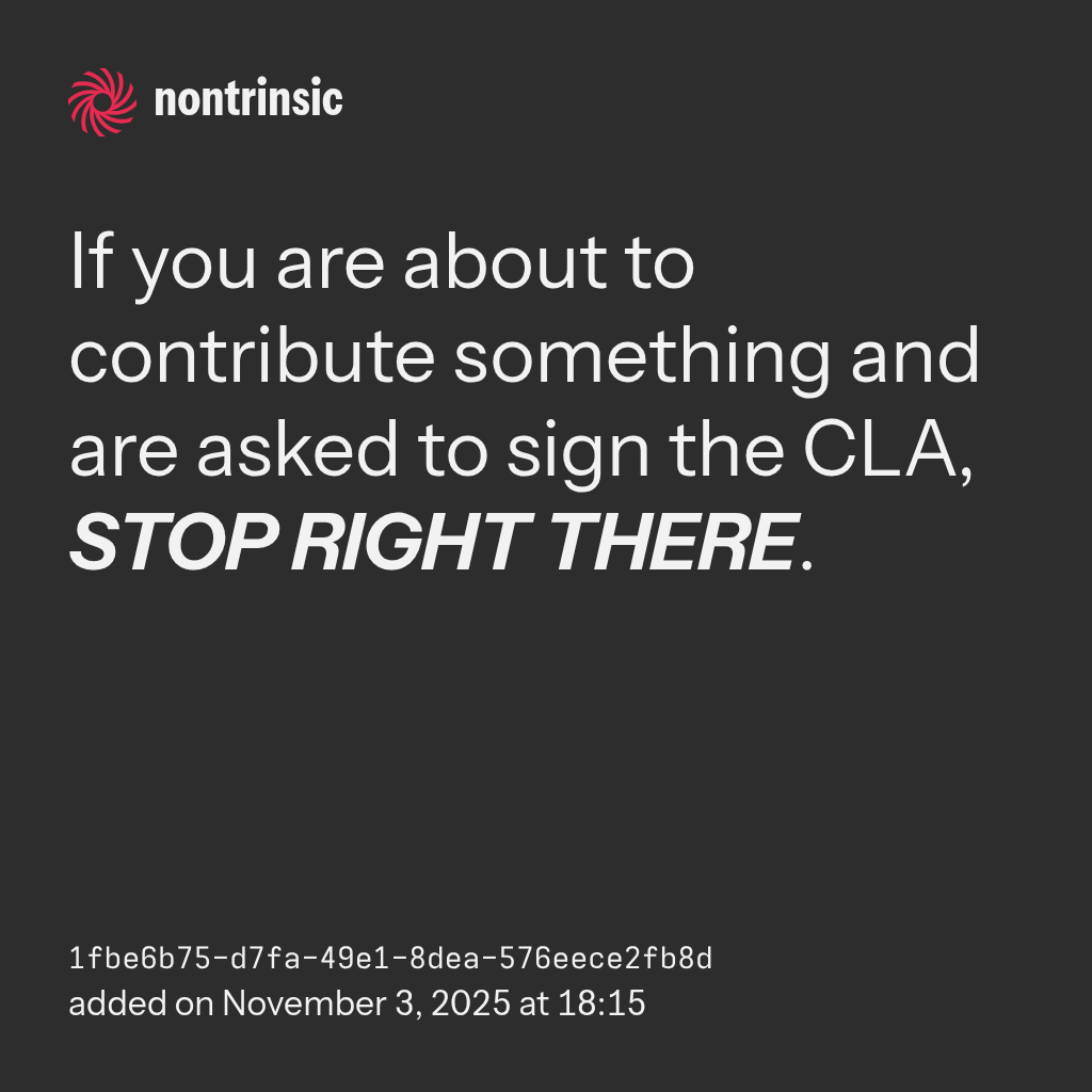 shareIf you are about to contribute something and are asked to sign the CLA, STOP RIGHT THERE.